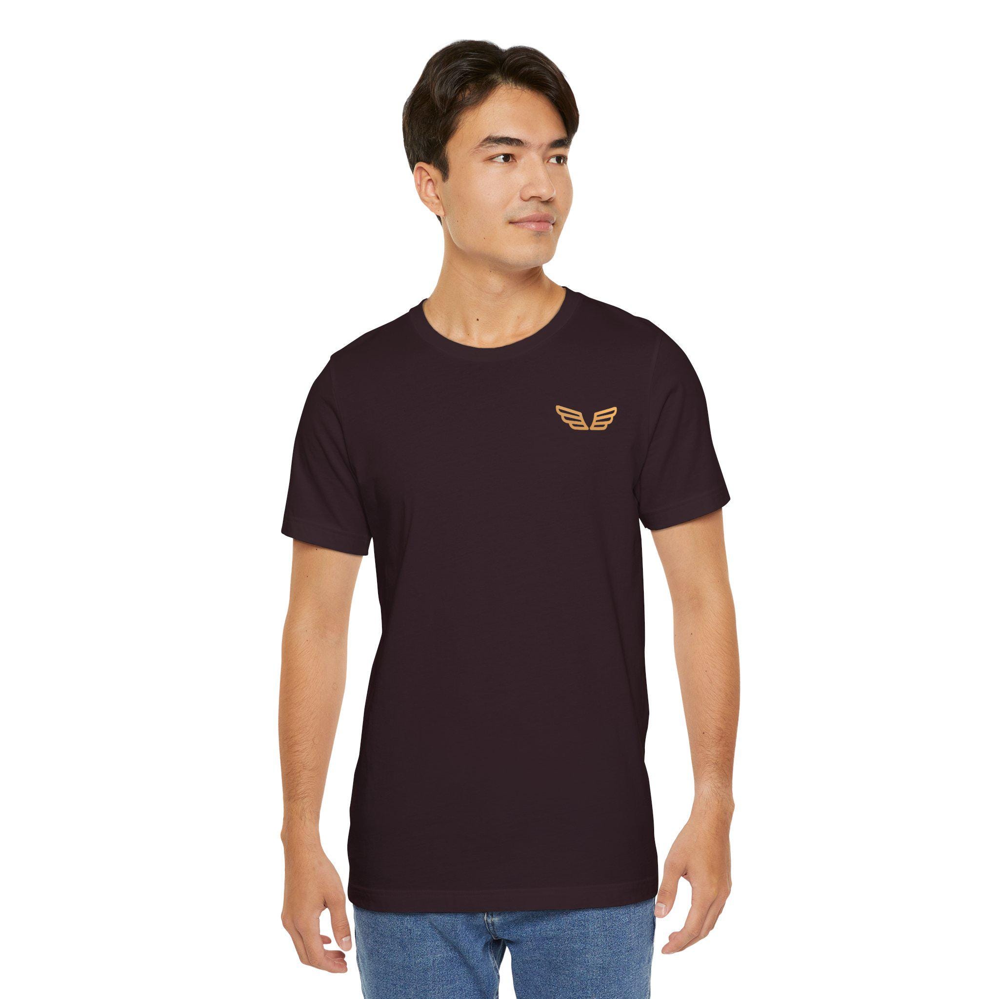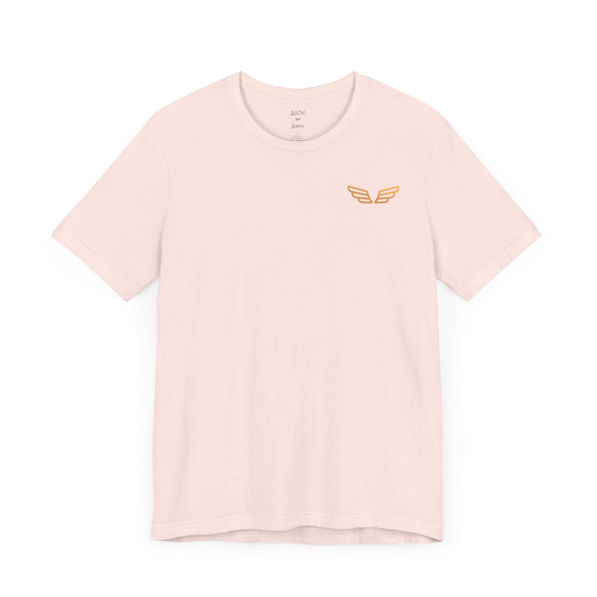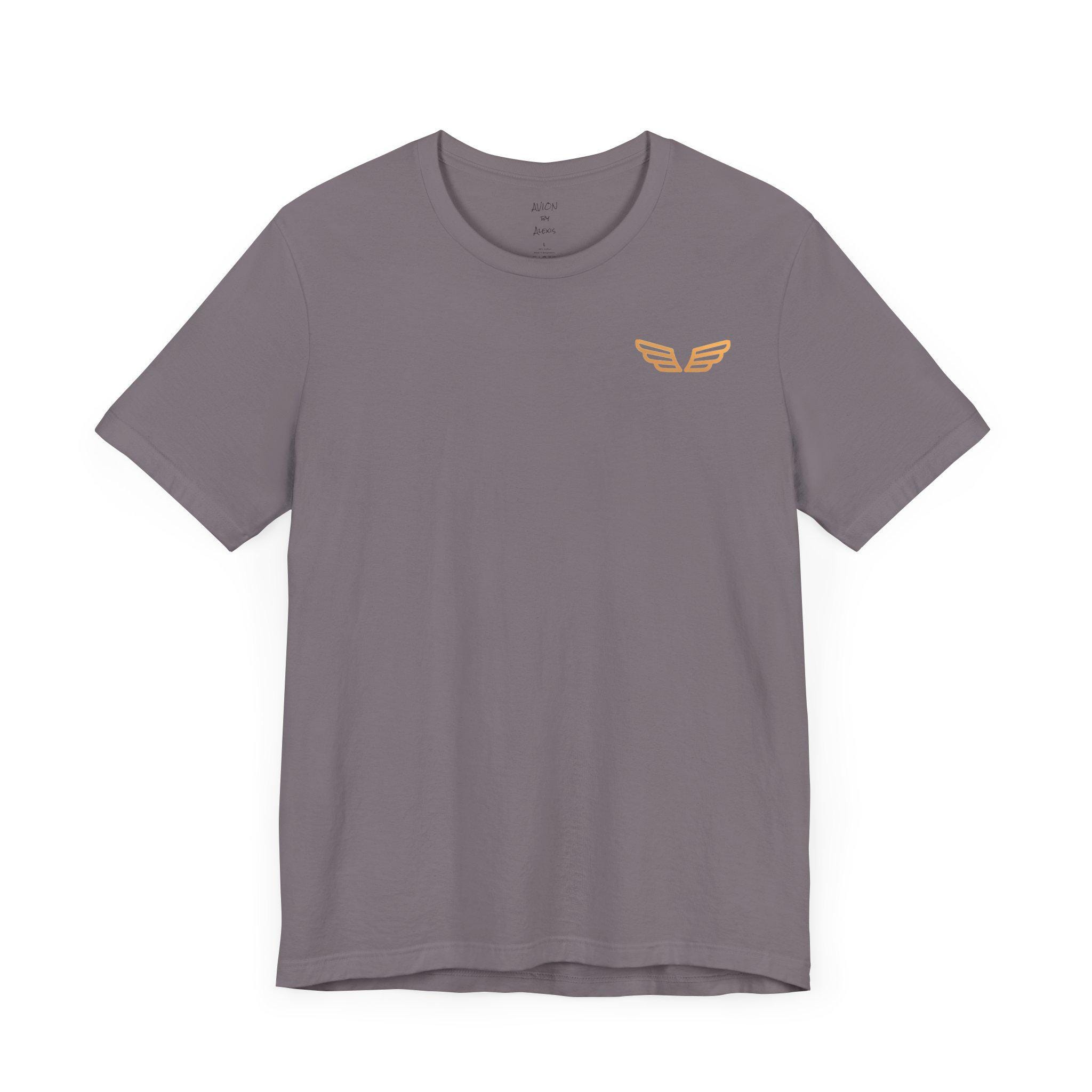 Agreed, all of your outfits SHOULD feature your wings! Elevate your favorite looks with this soft cotton tee, available in several captivating shades to contrast with our gold wings. Crafted from breathable fabric, it offers a lightweight feel that’s ideal for layering. The classic crew neckline adds a modern touch, perfect for accessorizing with your favorite jackets or jewelry.